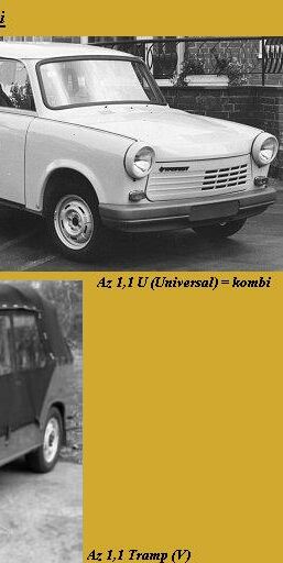 négyütemű Trabant - Trabant 1.1/1,1 - limuzin - kombi - Tramp - Polo motoros Trabant - 1.1/1,1 típustörténet - 1.1/1,1N/U/V - szériagyártás - első - Zwickau - Mosel - VW Polo kombi - Pick-Up/Quick-Trans
